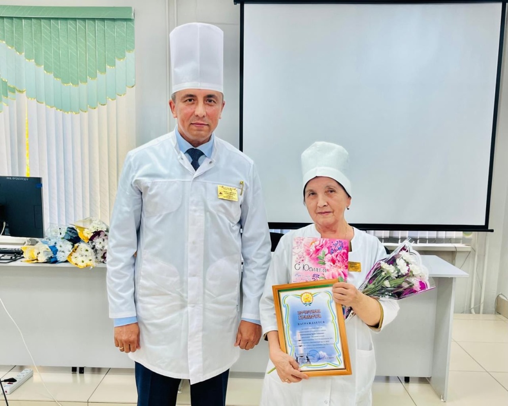 Почетную грамоту администрации МР Бакалинский район врачу-педиатру участковой юбиляру Зиле Шаймардановой и массажисту Гузель Низамовой, Почетные грамоты ЦРБ заведующей Юльтимировским ФАП юбилярю Сарие Хайдаровой , повару Гульнаре Фахруллиной и уборщику служебных помещений Люцие Тазетдиновой.