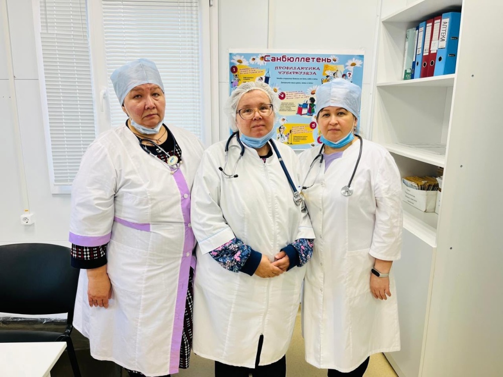 совместно с зав. фельдшером Староматинского ФАП Габсатаровой Винерой Фатыховной, фельдшером Савельевой Натальей Георгиевной