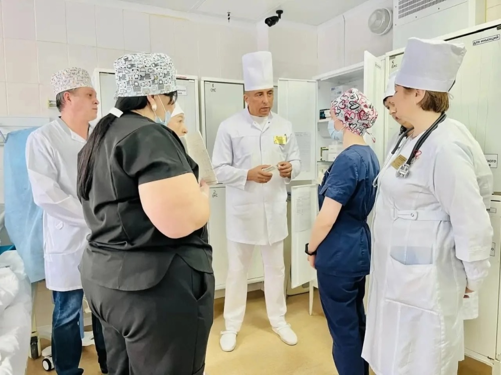 Сегодня 10 февраля главный врач Бакалинской ЦРБ Гиздатуллин Забир Саримович провёл в очередной раз общий обход хирургического отделения и реанимационной палаты совместно с заместителем главного врача Самигуллиной Тамарой Хатыбовной , начмедом Ахатовой Луизой Александровной, зав кабинетом врачебного контроля качества и безопасности медицинской деятельности Хайдаровой Римой Федоровной и главной медсестрой Галимуллиной Лилией Рифовной.