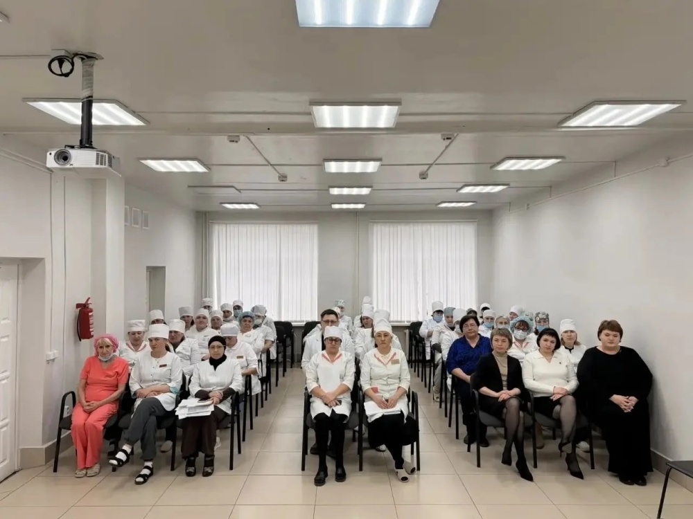 В начале совещания главный врач Бакалинской ЦРБ Забир Саримович Гиздатуллин поздравил с юбилеем логопеда Сазанову Ирину Сергеевну.