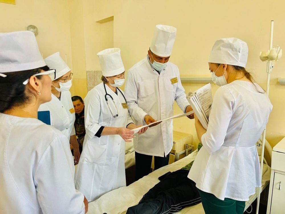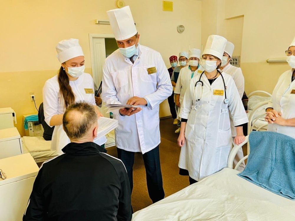 Сегодня 29 октября главный врач Бакалинской ЦРБ Гиздатуллин Забир Саримович в очередной раз провёл общий обход терапевтического отделения совместно с заместителем главного врача Самигуллиной Тамарой Хатыбовной , начмеда Ахатовой Луизы Александровны .И . о. заведующего терапевтическим отделением Максимова Светлана Васильевна и врач невролог Хурамшина Ляйсан Рафатовна ознакомили с пациентами находящимися на стационарном лечении. Главным врачом в ходе беседы задавались вопросы по удовлетворенности лечением , уходом и организацией питания , были даны ответы на интересующие вопросы.