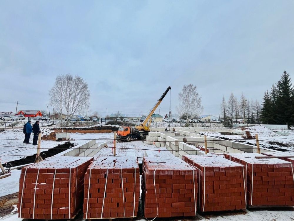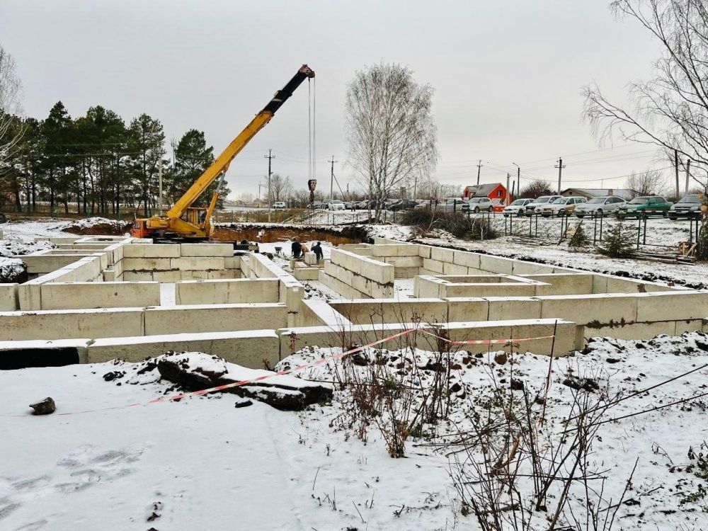 На объекте строительства завершена работа по устройству фундамента, ведется монтаж стен технического подполья.