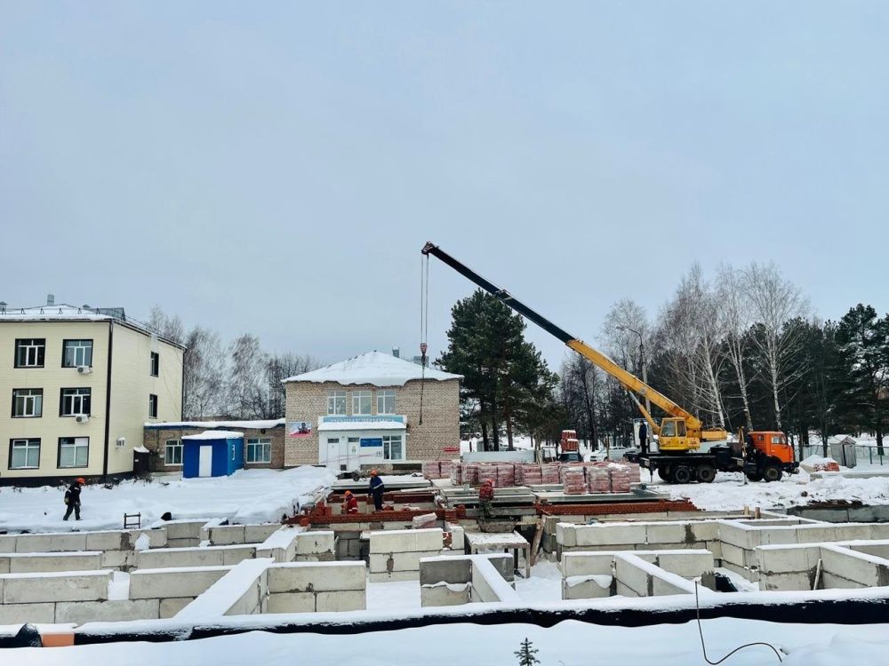 На данный момент произведен значительный объем работ по подготовке участка застройки, установлены ограждения, отработана маршрутизация посетителей, подготовлены дополнительные входы в учреждение, произведена разработка грунта под фундамент и подвальное помещение, проведена временная линия электропередачи на объект строительства с установкой прибора учета, произведен комплекс работ по устройству стен технического подполья, сделан большой объем по устройству водоотведения. Строители активно работают над устройством цоколя и приступили к укладке плит перекрытия.