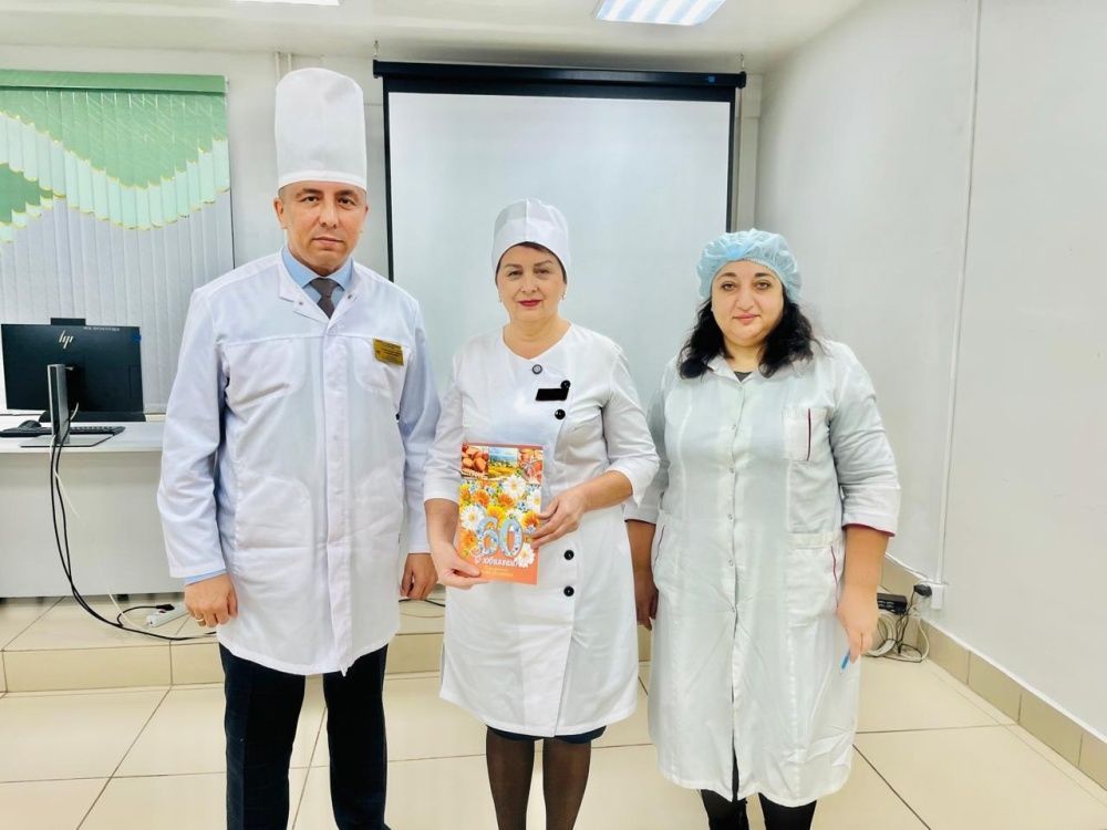 Главный врач Забир Саримович перед началом совещания поздравил с юбилеем старшую медицинскую сестру хирургического отделения Хайретдинову Ризиду Анасовну.