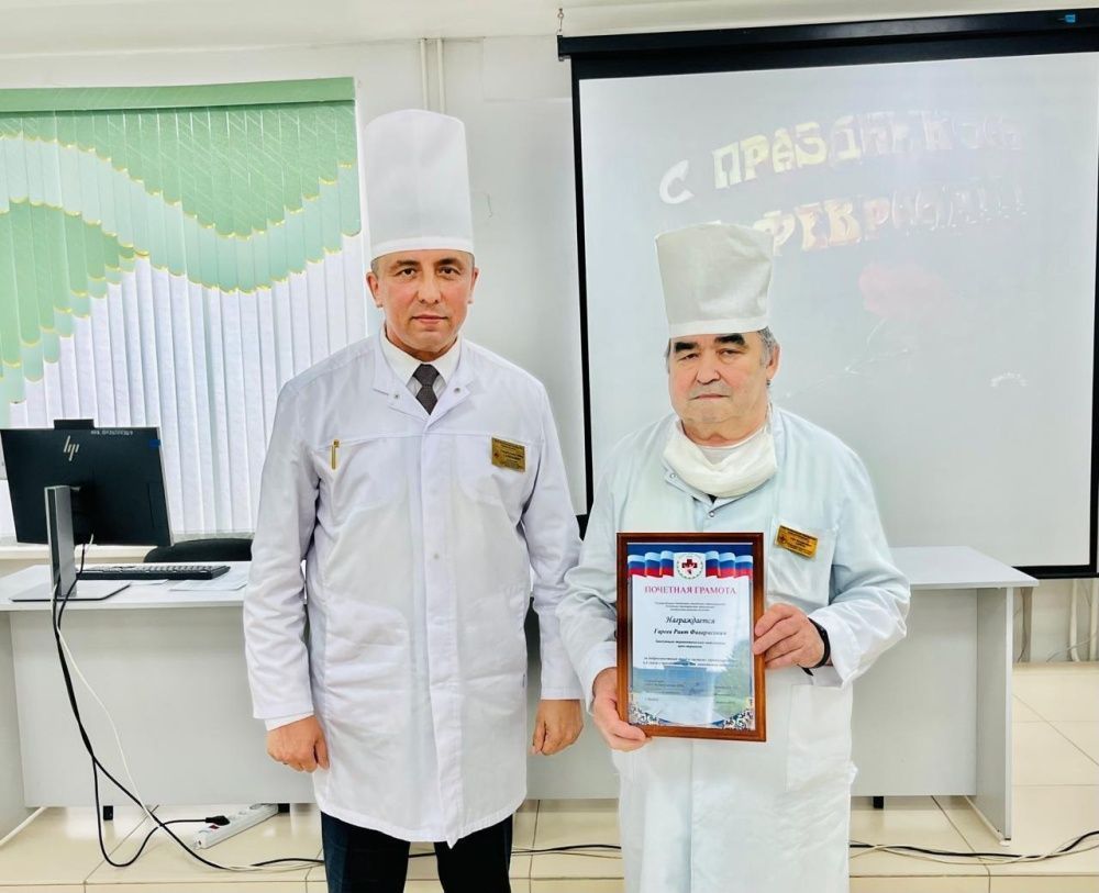 Сегодня 19 февраля в предверии Дня защитника Отечества в актовом зале больницы провели чествование сотрудников мужчин. Главный врач Забир Саримович за плодотворную работу вручил Почетные грамоты центральной районной больницы заведующему терапевтическим отделением Гарееву Раяту Фаварисовичу, врачу-хирургу Ахмадуллину Азату Замировичу, врачу-хирургу Багаутдинову Ильдусу Науфалевичу, рентгенлаборанту Авзалиеву Руслану Фанависовичу, специалисту по защите информации Купцову Вячеславу Евгеньевичу, водителю автомобиля Низамову Мунирьяну Амирьяновичу и слесарю-сантехнику Волкову Константину Владимировичу. Так же, Забир Саримович поздравил с юбилеем электрика Алчинова Валерия Анатольевича и штукатура-маляра Такашова Георгия Николаевича. Он отметил вклад каждого из них в общее дело.
