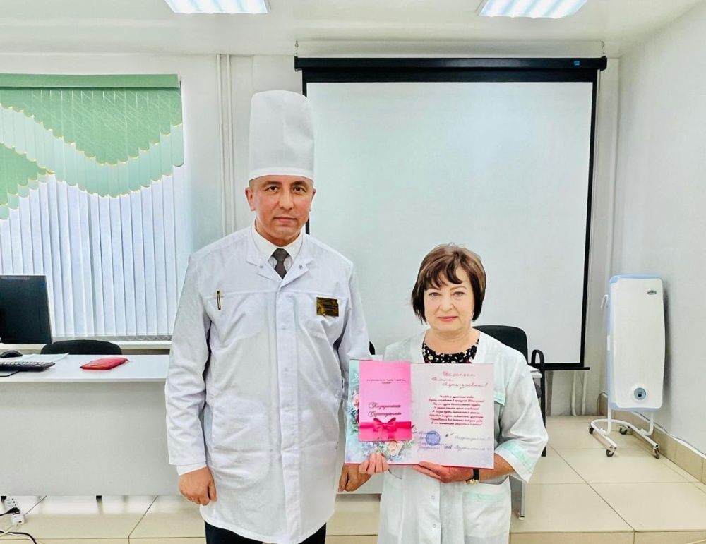 26 февраля прошло еженедельное оперативное совещание с сотрудниками амбулаторно-поликлинической службы. В начале совещания главный врач Бакалинской ЦРБ Забир Саримович Гиздатуллин поздравил с юбилееями медицинскую сестру кабинета ультразвуковой диагностики Хайбрахманову Эльзу Флюровну и фельдшера-лаборанта Денисову Галиму Мутагаровну.