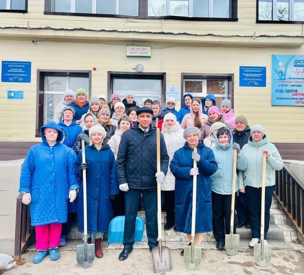 Главный врач, врачи, медсестёры, младший и прочий персонал продемонстрировали сплоченность и заботу о своем рабочем пространстве, приняв участие в масштабном благоустройстве территории.