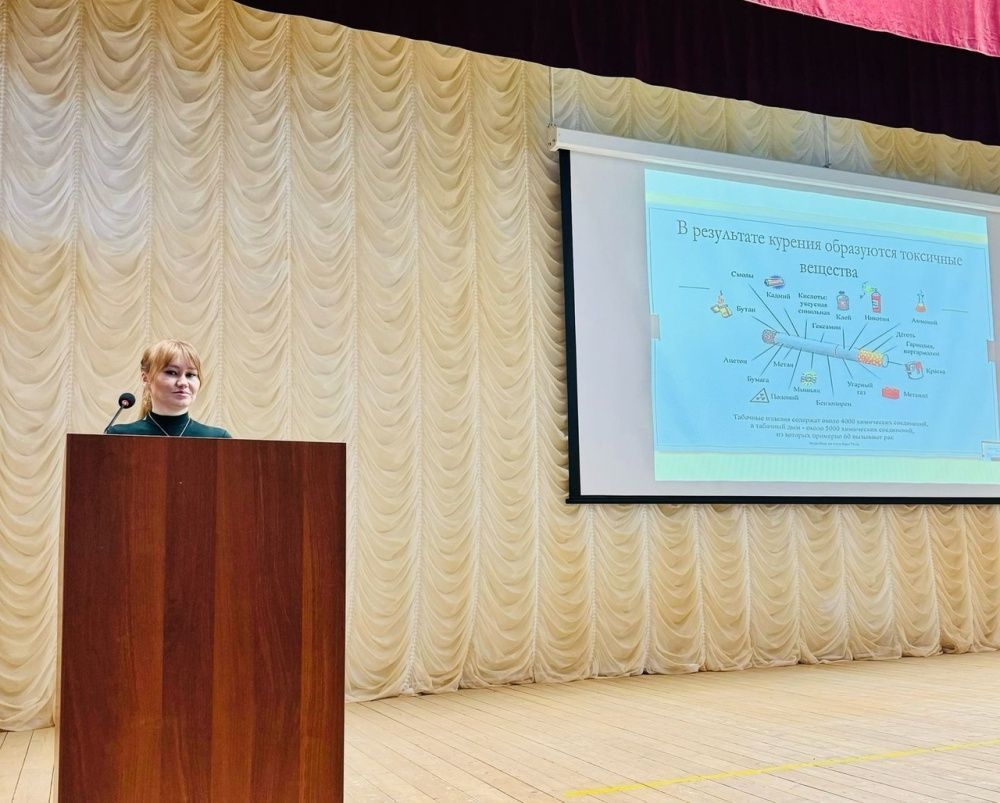 Одним из направлений нашей деятельности является профилактическая работа по популяризации здорового образа жизни среди подрастающего поколения. 24 марта в актовом зале МОБУ СОШ 1 прошел классный час «разговоры о важном» среди 6-9 классов, в котором выступила врач психиатр-нарколог Бакалинской больницы. В ходе профилактической беседы Эльвира Дамировна рассказала о пагубном воздействии алкоголя и табака на не сформированный детский и подростковый организм. Школьникам объяснили о том, как безобидные на первый взгляд никотиновые смеси, алкоголь-содержащие напитки губительно влияют на молодой организм.