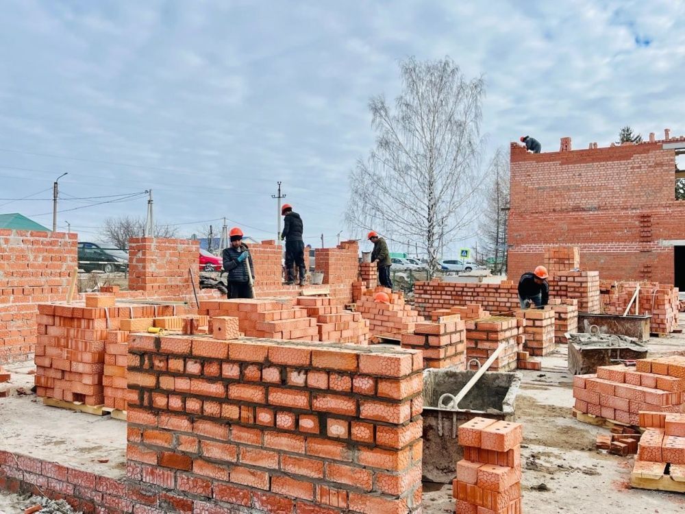 По состоянию на сегодняшний день ведутся работы по кладке стен первого и второго этажа, кладка перегородок первого этажа, монтаж плит перекрытия.