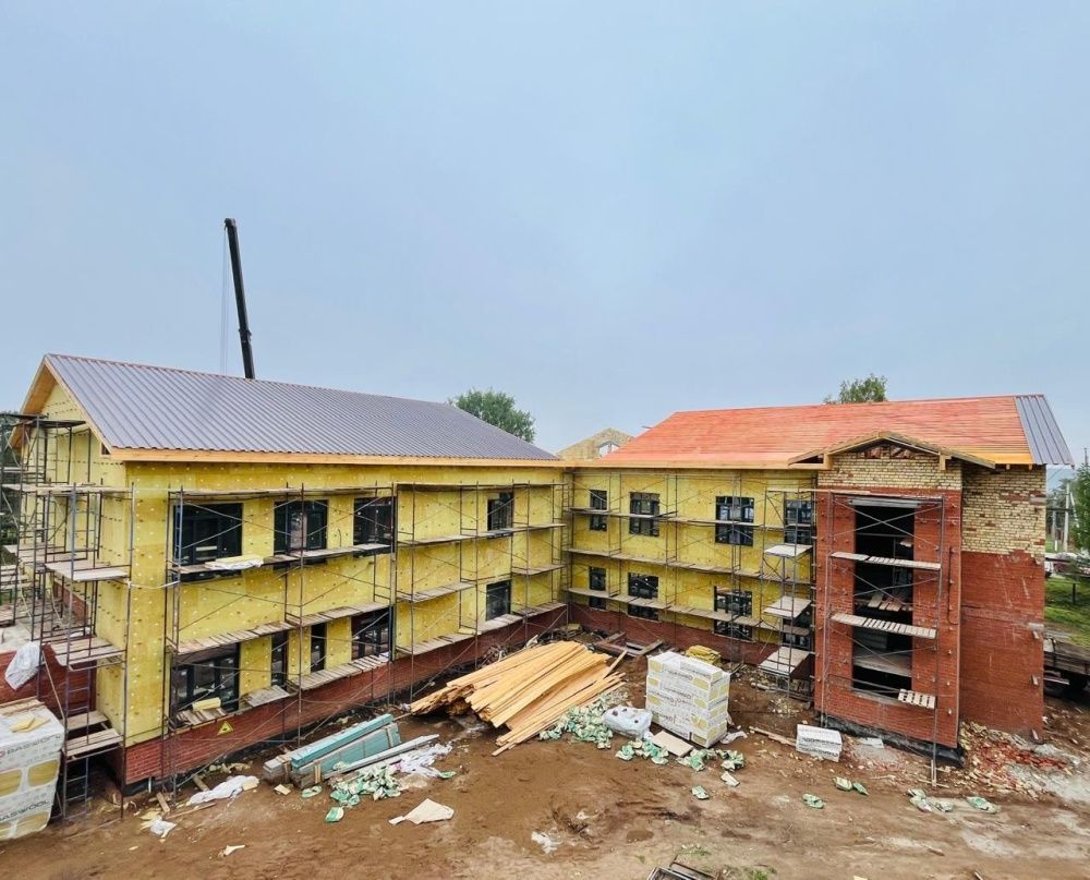 По состоянию на сегодняшний день выполнено устройство фундаментов, устройство стен подвала из блоков ФБС, устройство стен и перегородок первого и второго этажа, стяжка полов первого этажа, вынос наружных сетей канализации, монтаж плит перекрытий. Ведётся монтаж электропроводки, монтаж слаботочной линии, монтаж системы вентиляции, штукатурка, шпаклевка, монтаж плитки, устройство фасада, устройство кровли, прокладка системы лечебного газоснабжения, монтаж теплотрассы.