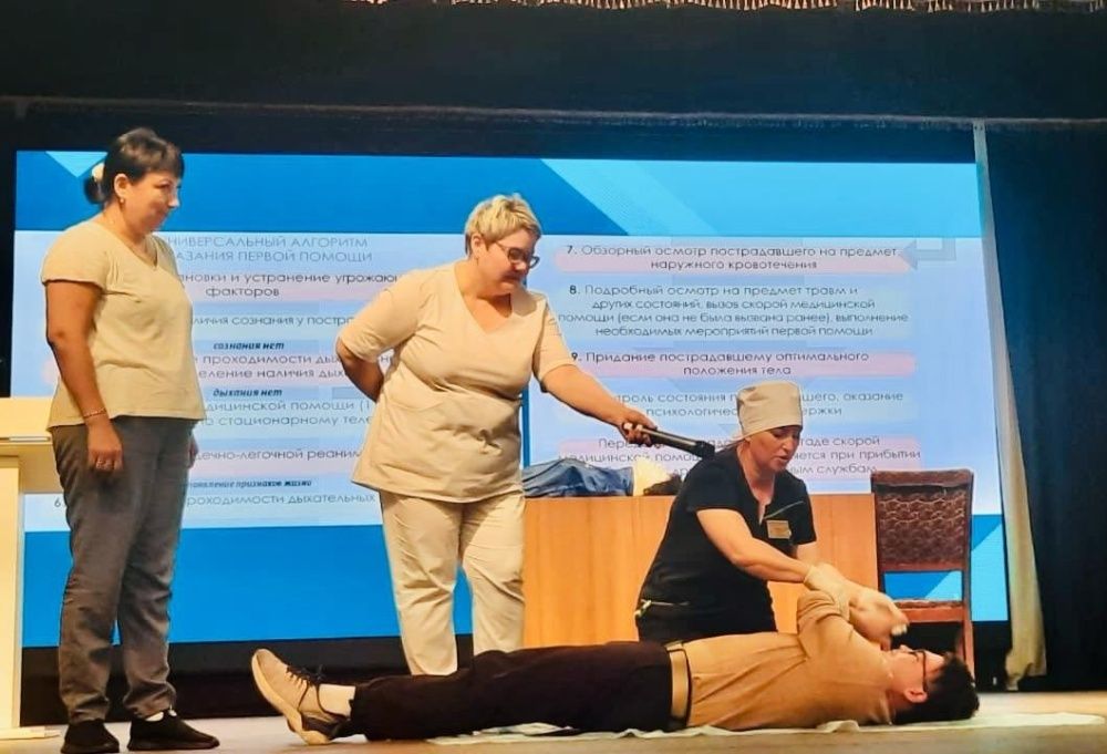 25августа 2025 года сертифицированные инструкторы Бакалинской ЦРБ Ирина Давыдова и Эльмира Султанова – провели занятие по основам первичной доврачебной помощи для сотрудников образовательных учреждений с.Бакалы.Выбор аудитории не случаен, так как персонал, работающий с детьми несет особую ответственность за их жизнь и здоровье.