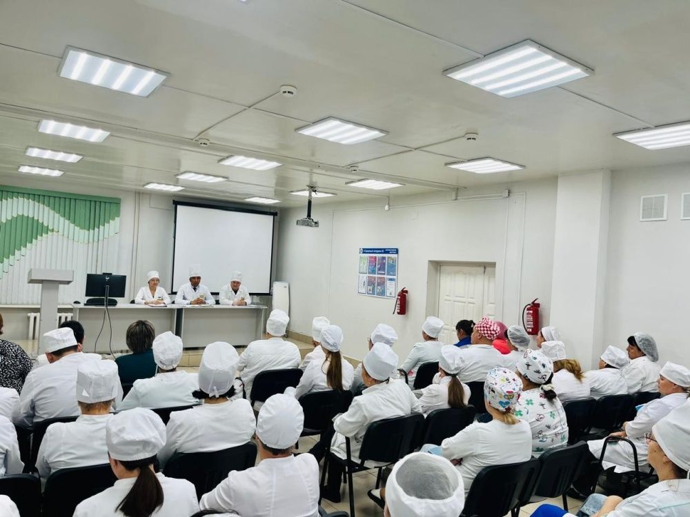Были представлены молодые врачи которые приступили к работе: Султанбай Самат Бауржанович, Сулейманова Ильвина Саматовна, Кудрина Карина Юрьевна. Озвучены результаты работы поликлиники за прошедшую неделю, обозначили задачи на предстоящую неделю, а также обсудили с коллективом текущие вопросы организации первичной медико-санитарной помощи населению района.